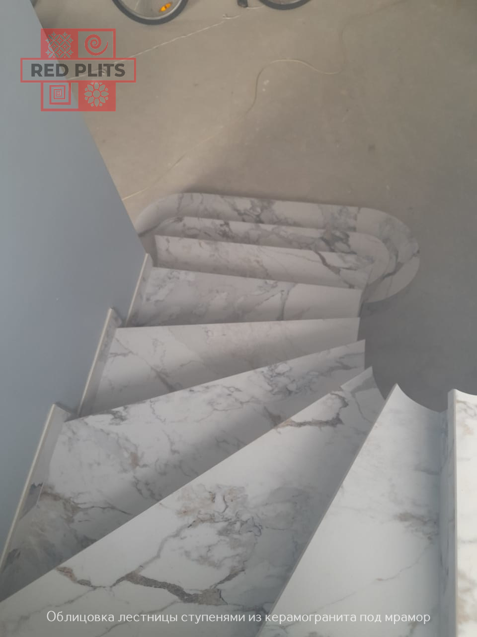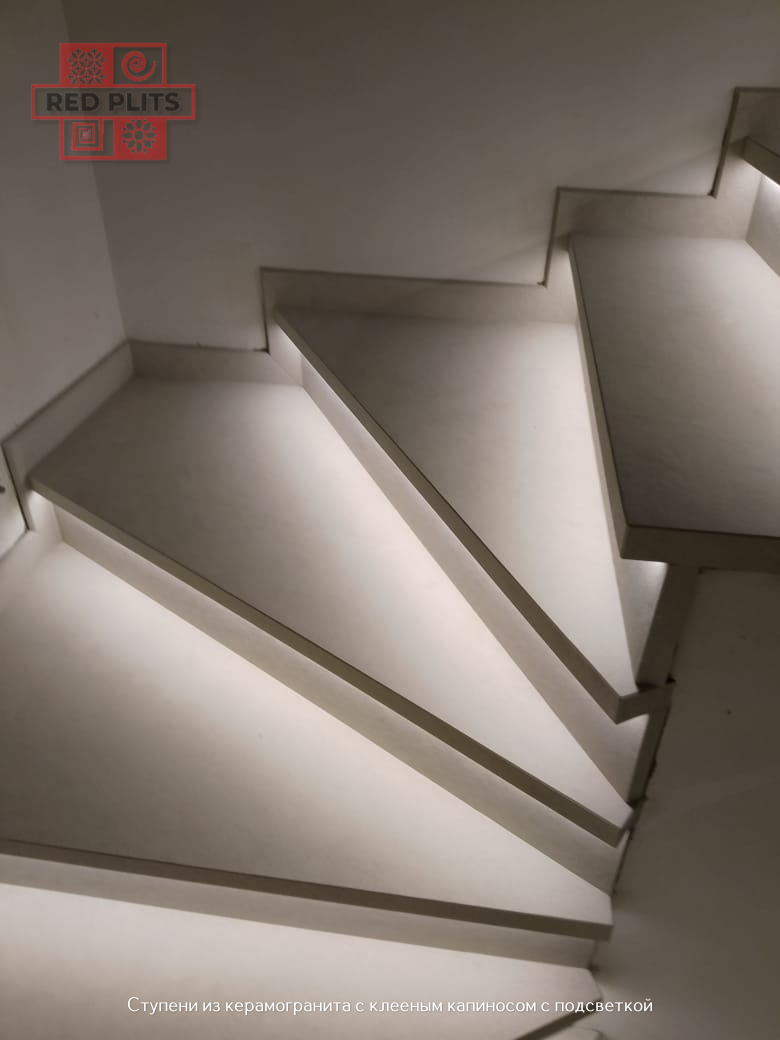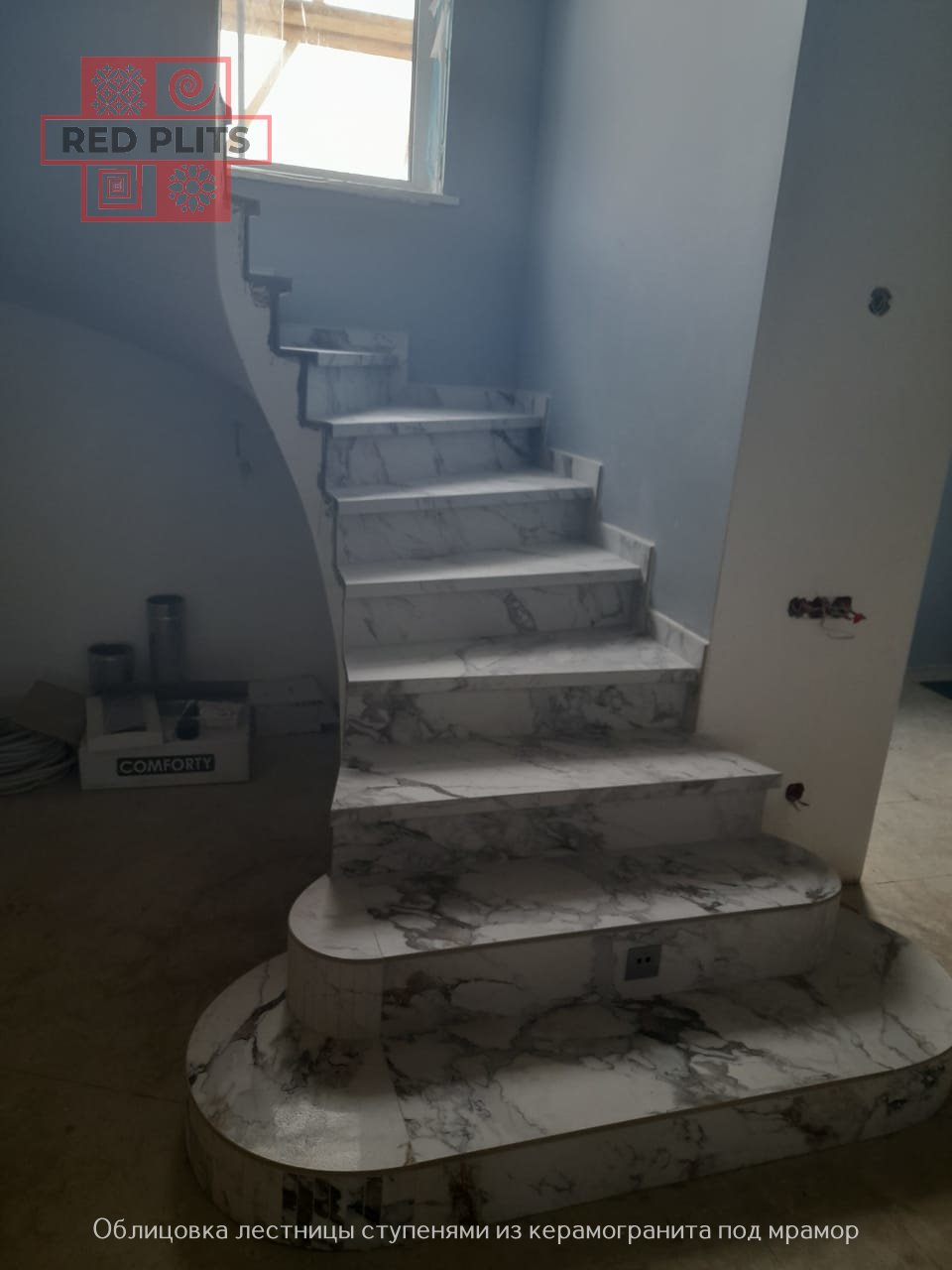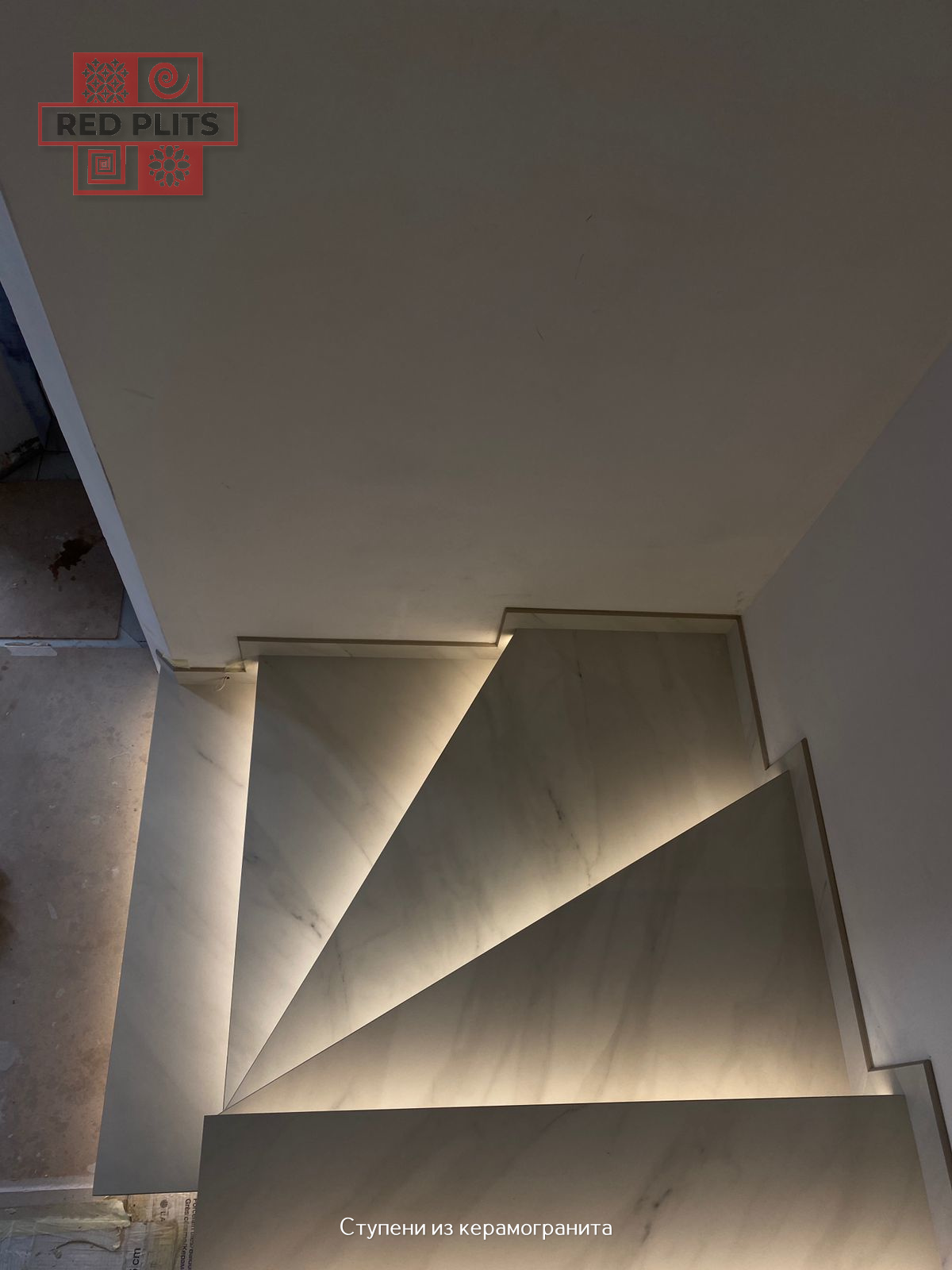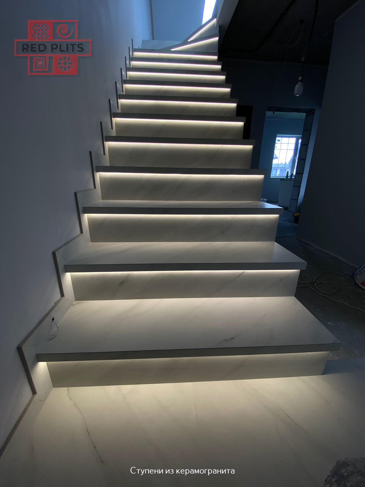 Собственное производство позволяет предложить резку керамогранита и изготовление ступеней из керамогранита на заказ по индивидуальным проектам практически любых размеров и формы!