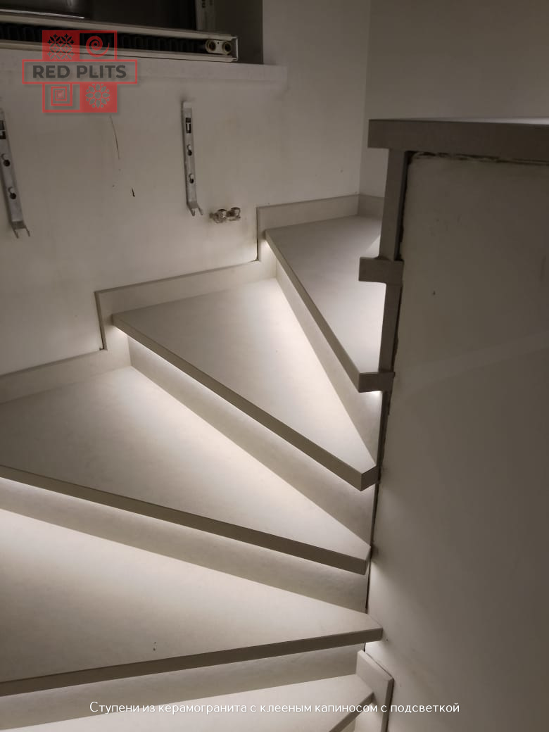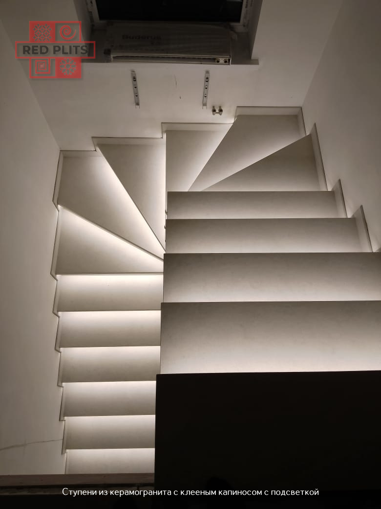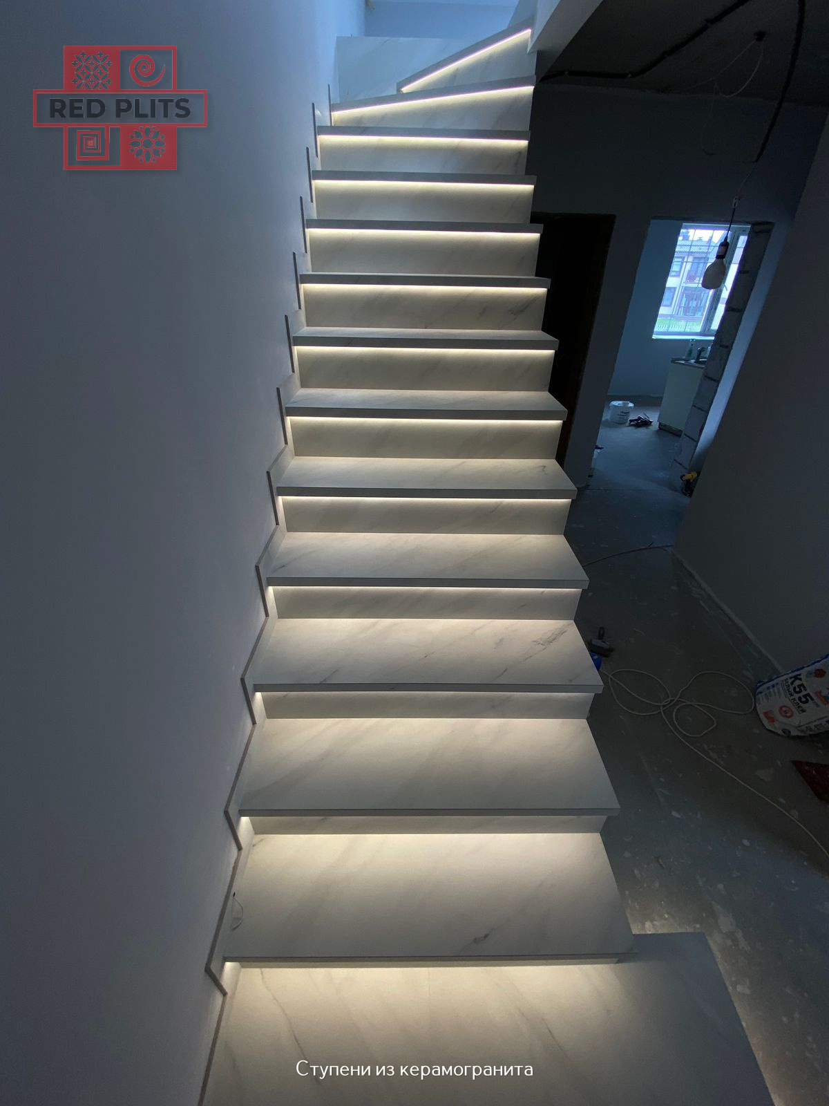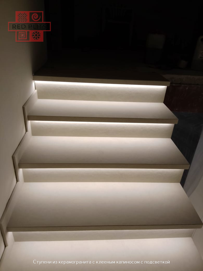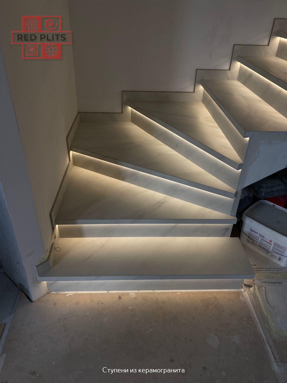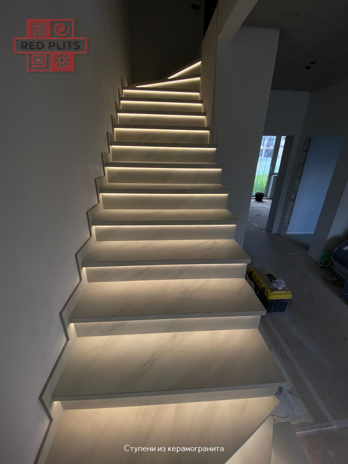 Собственное производство позволяет предложить резку керамогранита и изготовление ступеней из керамогранита на заказ по индивидуальным проектам практически любых размеров и формы!