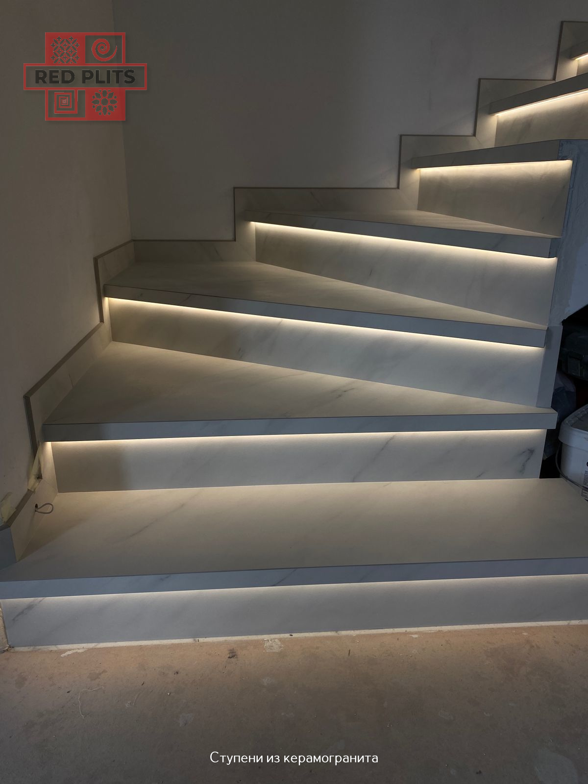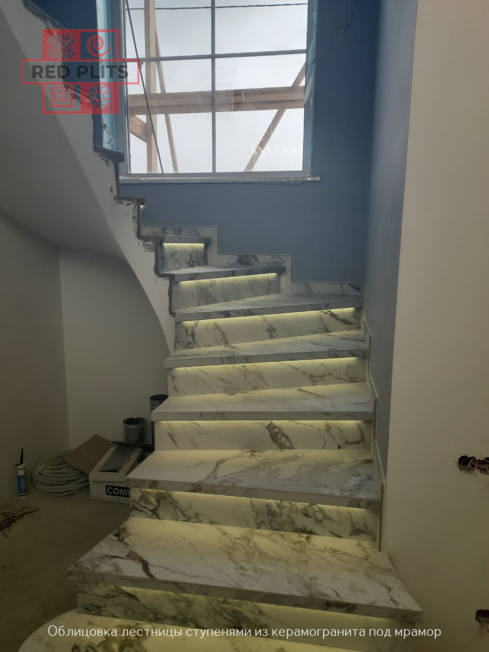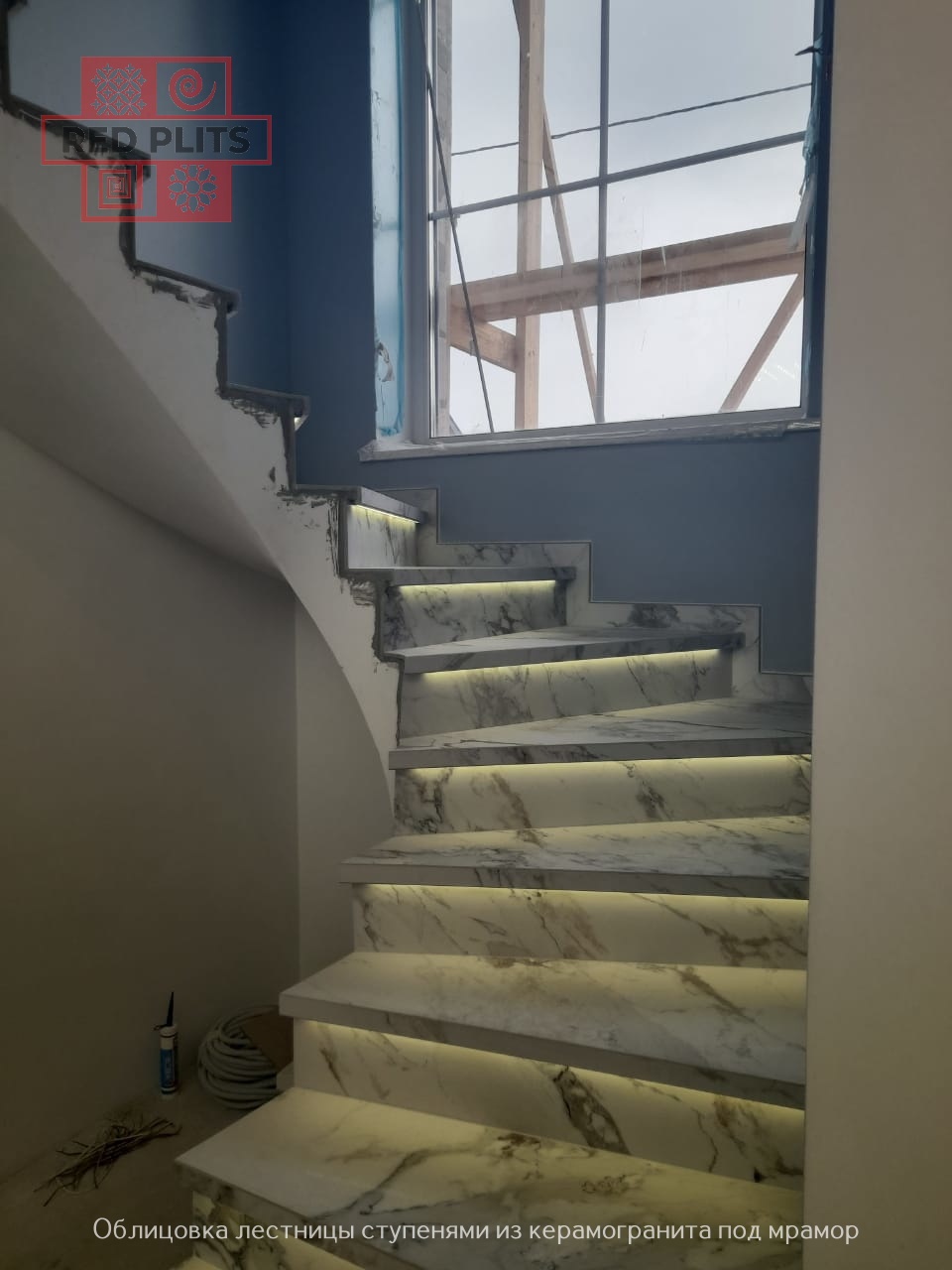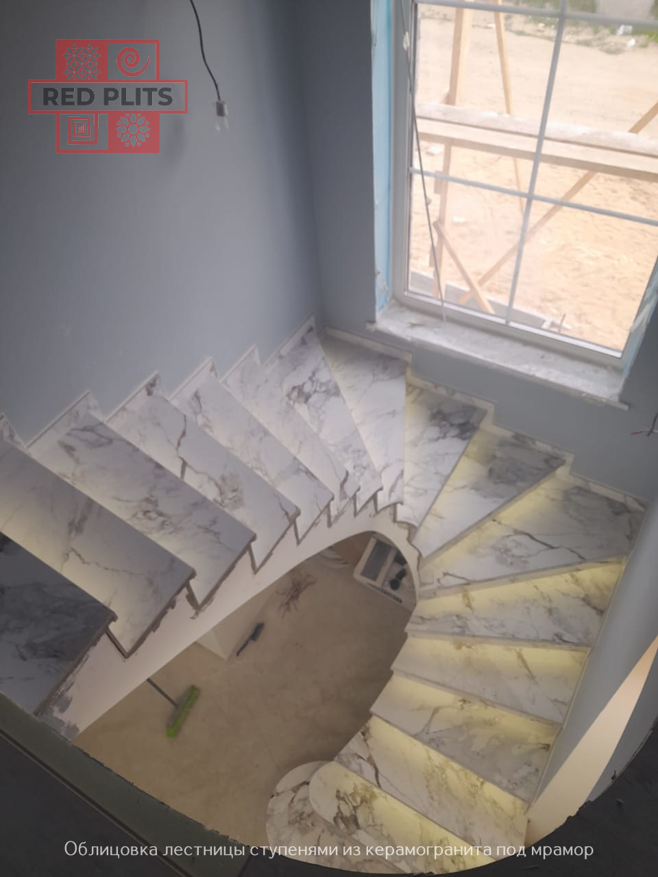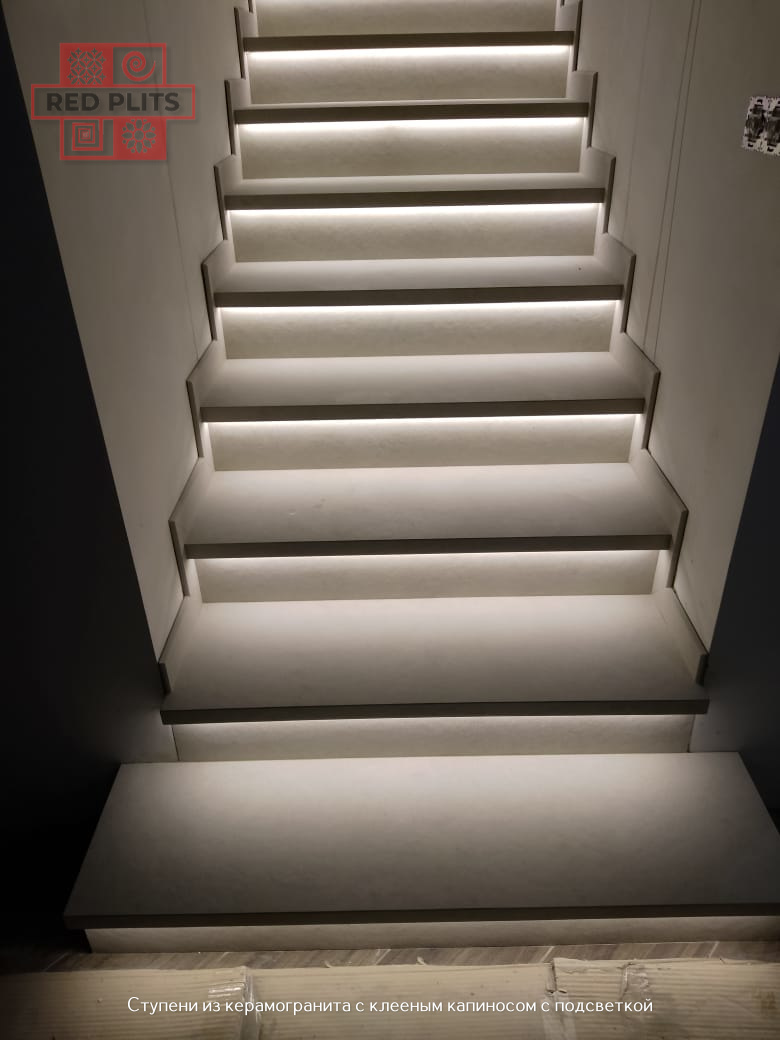 Собственное производство позволяет предложить резку керамогранита и изготовление ступеней из керамогранита на заказ по индивидуальным проектам практически любых размеров и формы!